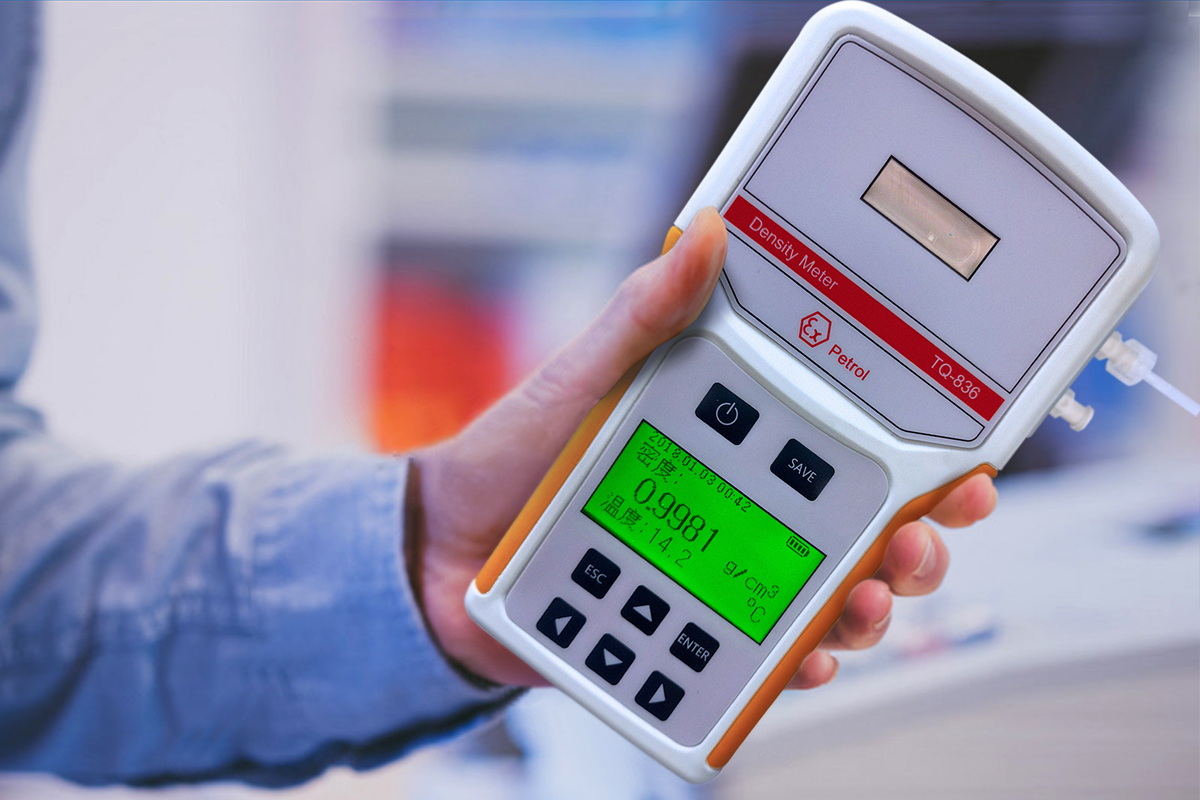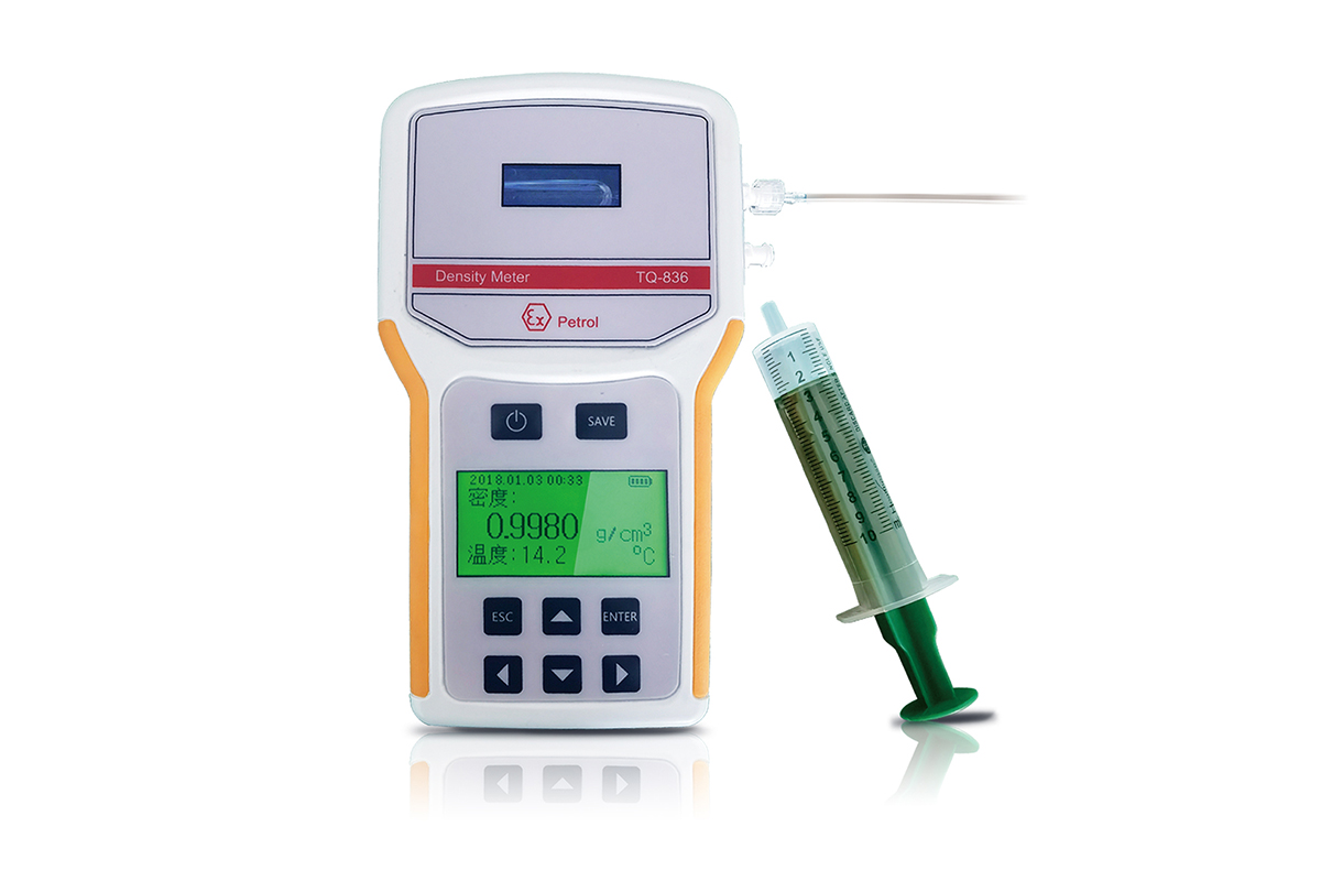 TQ-836新型便携式密度计采用手持式数字显示模式更新了密度计的安装式工作状态状态。主要针对特殊工业环境使用需求而设计,可向客户提供多种可选择数据显示( 如密度,比重,或样品浓度百分比等 )。只需要往样品输入口内注入样品,即可获得清晰明亮的即时数据显示。